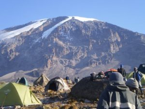 Around midnight, begin the final ascent to Uhuru Peak, the highest point in Africa. For the next six to eight hours, hike by the light of your flashlight. It can be very cold at night at these elevations, but it will be quite warm by the end of the hiking day and therefore you will want clothing for both extremes. The ascent to the crater rim is the most challenging part of the entire trek. The trail is very steep until you reach the crater rim at Gilman’s Point.  The hike from Gilman’s to Uhuru Peak is a gradual climb and, as far as hikes go, not very difficult. The altitude however makes the hike long and tiring.  After summit celebrations you will descend to Kibo Huts.  From the summit the descent will take you straight down to Mweka Hut, with lunch served on the way.  This part of the descent takes about 6 hours.  Later in the evening enjoy your last dinner on the mountain and a well-earned sleep. Beer and soda may be available for purchase at Mweka Hut, the only place it is available on this route.